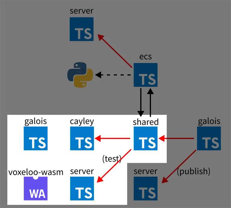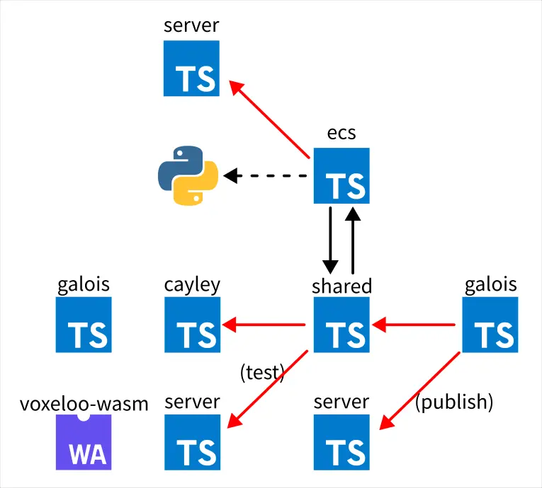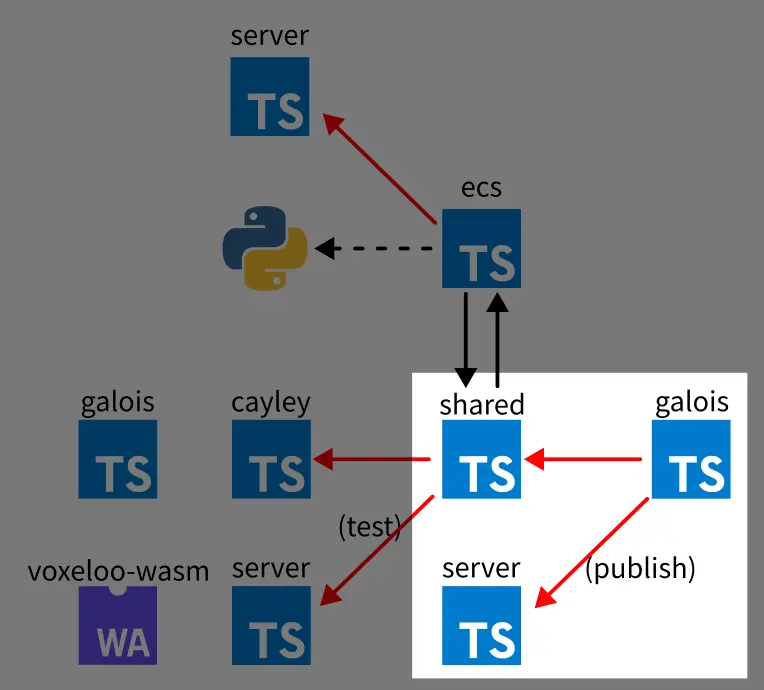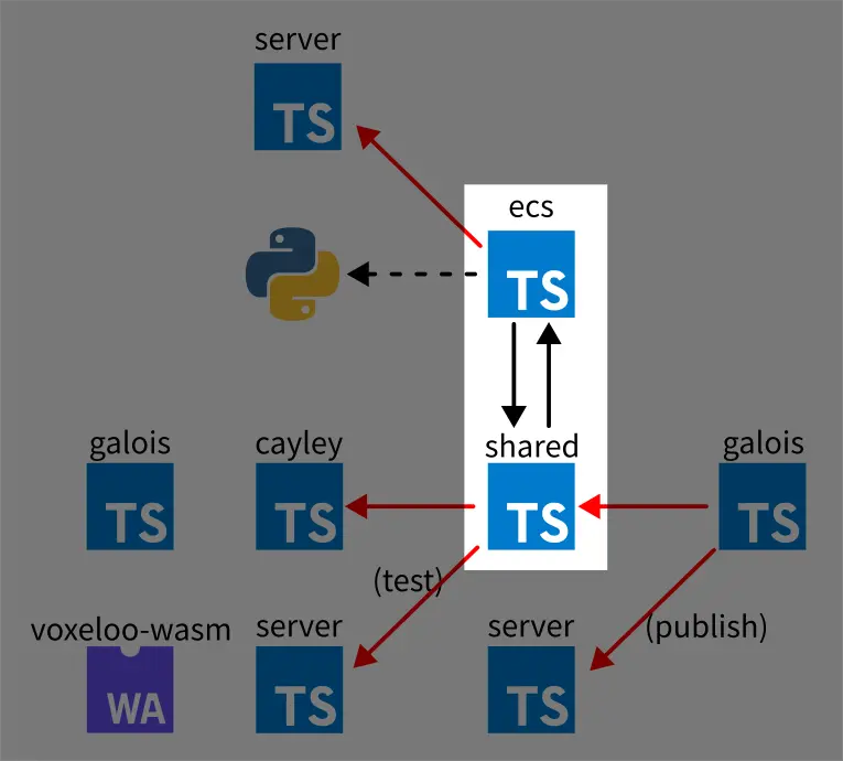 因為 ecs 組件大部分的程式碼用 Python 生成的,可以的話我想拉出來變成單獨的套件,但是因為它跟 shared 之間有密切的耦合(循環仰賴),無奈之下只能用 monorepo 處理。