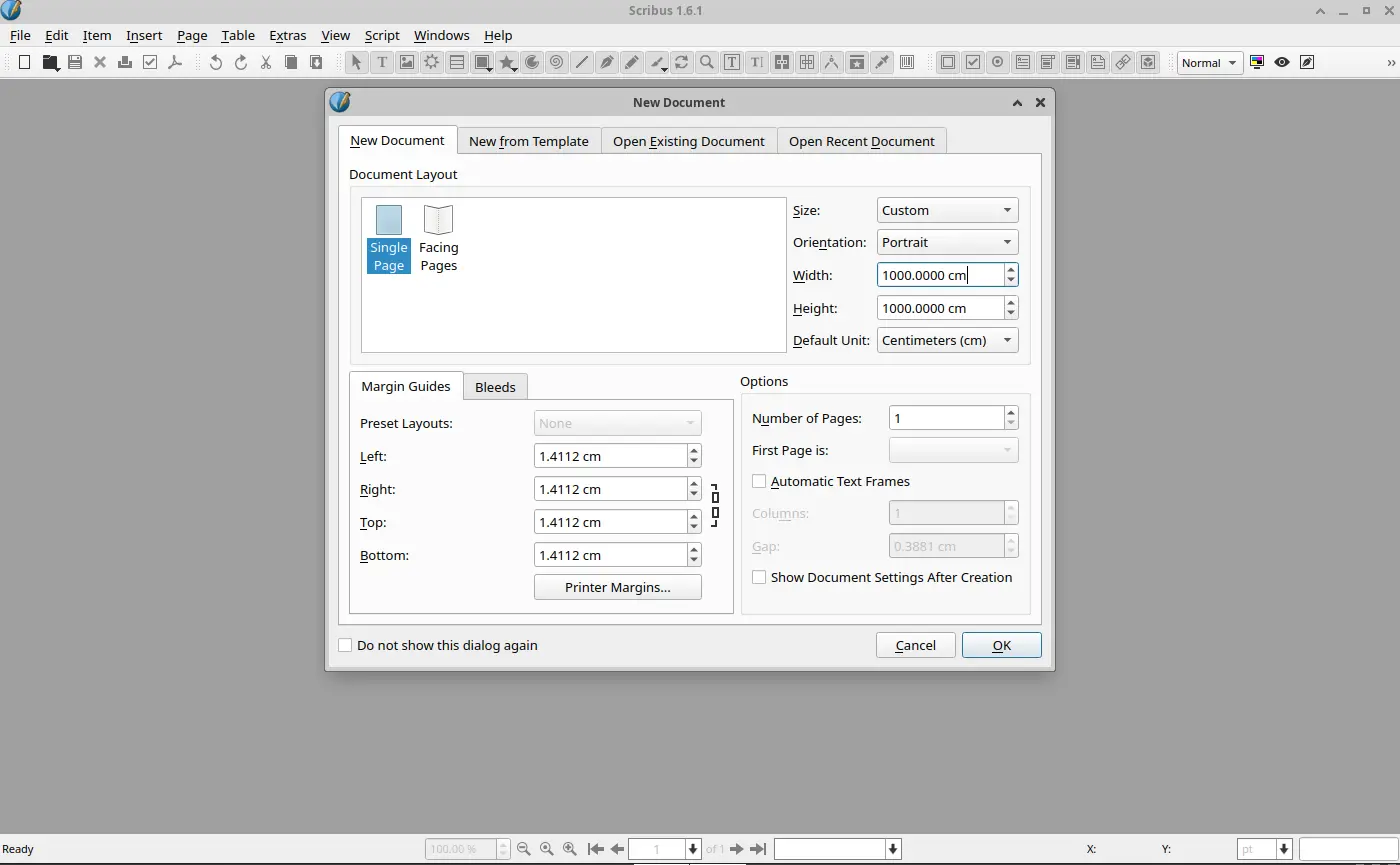Scribus 的定位則剛好屬於這個領域,因此用它可以輕易的產生與遊覽「10 公尺×10 公尺」這樣的樣本。