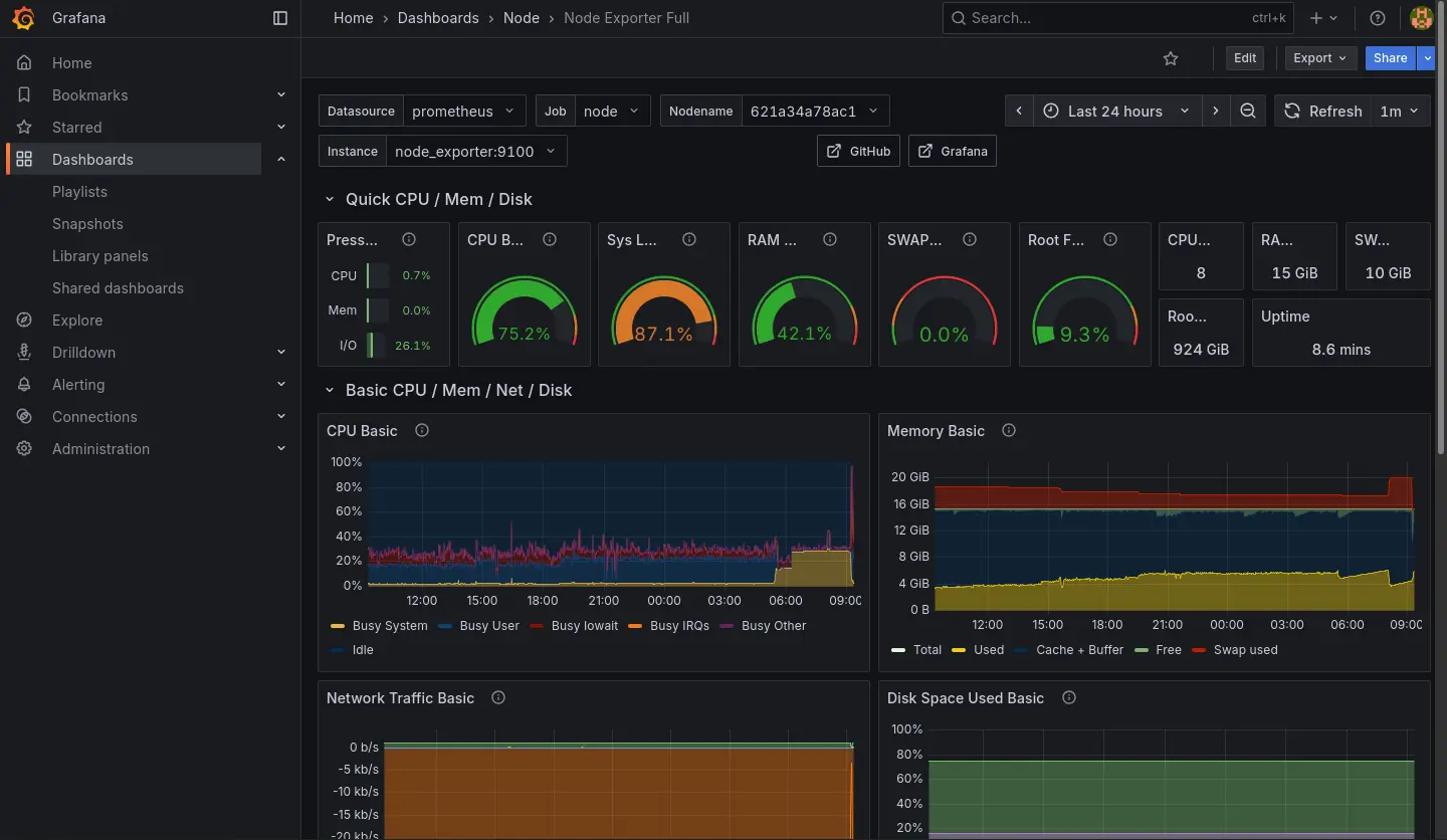 Node Dashboard 則是直接接軌新的 Node Exporter 的資料,暫時也先不處理舊節點的資料: