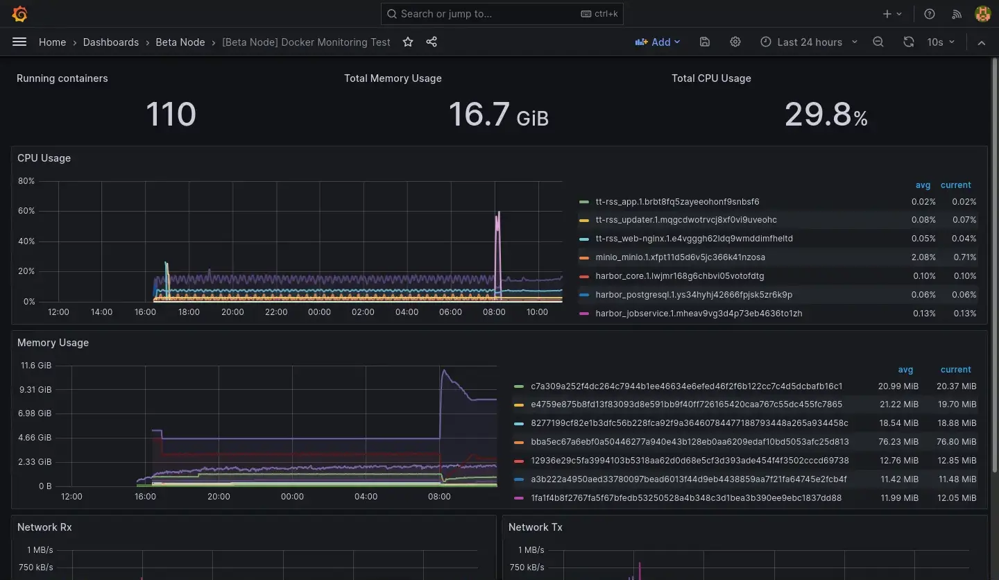 目前關於容器的 Dashboard 是處於兩個節點資料混在一起的狀態,暫時先不處理 Query 需要更新的問題: